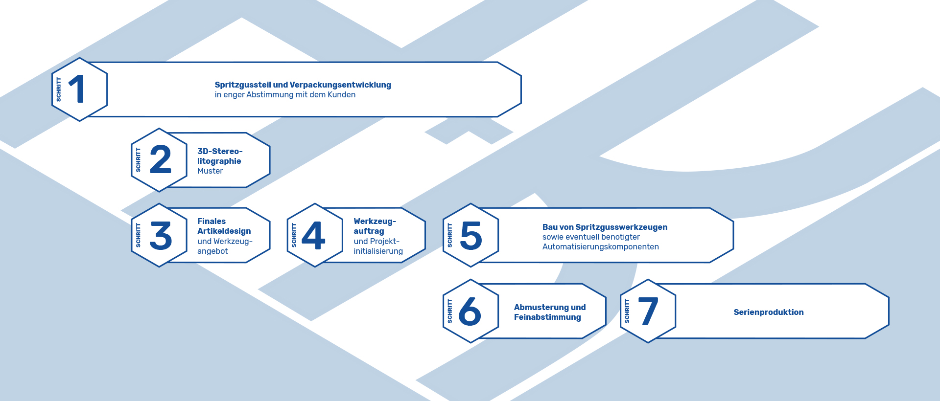 Nach Beauftragung des Spritzgusswerkzeugs wird mit dem Kunden, im Rahmen einer Projektinitialisierung, ein zeitlicher Projektablauf bis zur Lieferung der ersten Spritzgussteile aus Serienproduktion abgestimmt. Anschließend beginnt der Werkzeugbau bei H&K Müller mit dem Bau des Spritzgusswerkzeugs. Eventuell erforderliche Peripherie und Automations-Komponenten werden parallel erstellt und auf das Spritzgusswerkzeug abgestimmt.