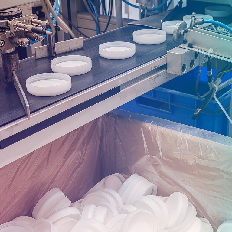 The look and design, as well as the technical and legal requirements, drive the choice of material and colour. Extensive testing is necessary for identifying advantages and disadvantages. Modifications to machines and feed devices are necessary to make the most of the advantages. In close coordination with material and colourant suppliers, we assure food and pharmaceutical safety. Through product specifications and declarations of conformity, we help customers meet their often wide-ranging evidence obligations.